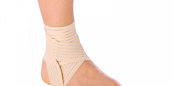 - Накладывается «восьмеркой» вокруг голеностопного сустава.